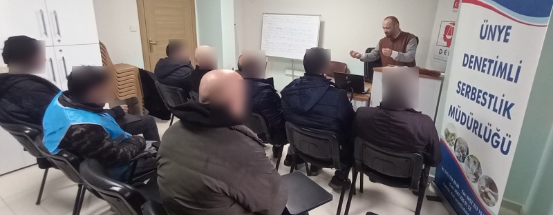 Ünye Denetimli Serbestlik Müdürlüğü manevi rehberi Yusuf Kermen tarafından bugün Miraç Kandili olması münasebetiyle Müdürlüğümüz seminer salonunda Denetimli Serbestlik yükümlülerinin katılımı ile “Miraç Kandili” konulu seminer düzenlendi. Seminere manevi rehberimiz Yusuf Kermen’in görev yaptığı camide devam edildi. Seminer Kuran-ı kerim tilaveti ve dullarla sonlandırıldı. Ayrıca hafta boyunca kamu yararına çalışan Denetimli Serbestlik yükümlüleri İlçe Merkezinde Ünye İlçe Müftülüğüne bağlı Camilerin iç ve dış temizliğine devam ettiler.
