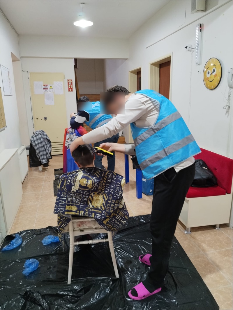 Denetimli serbestlik tedbiri altında bulunan ve berberlik/kuaförlük alanında deneyimli yükümlüler, Aile ve Sosyal Hizmetler Bakanlığı'na bağlı Ünye Çocuk Evleri Sitesi'ndeki çocuklara ücretsiz tıraş ve kişisel bakım hizmeti sundu.